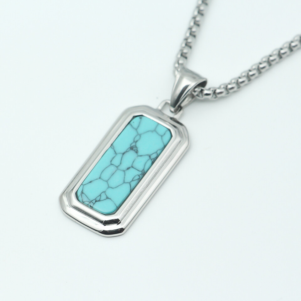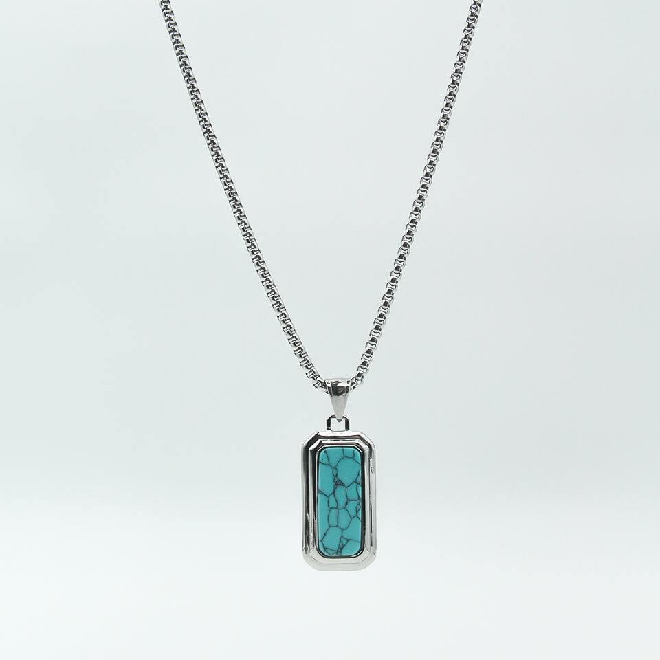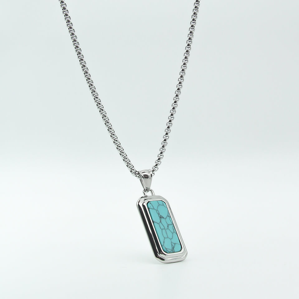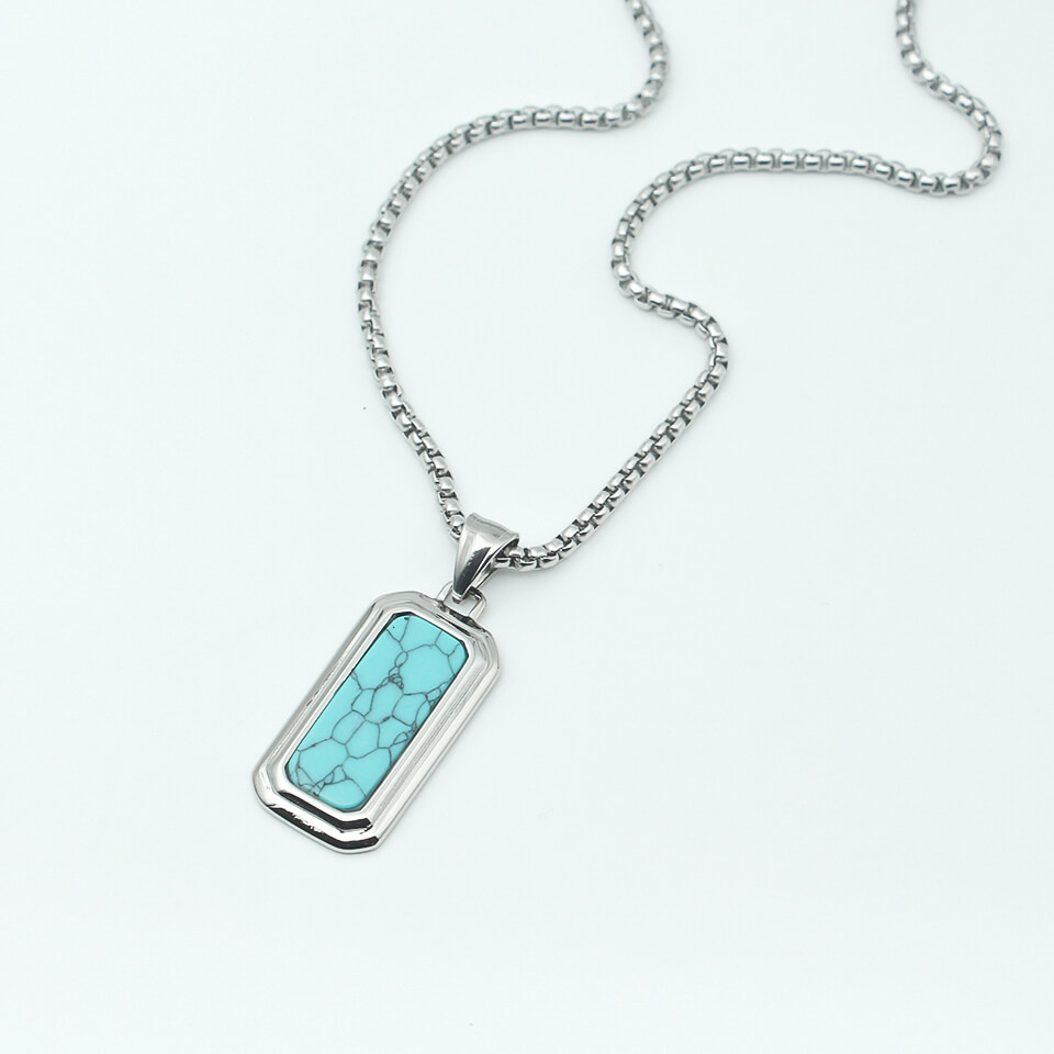 Men’s Silver Necklace Blue Rec MN1294